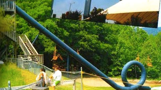 The story goes this is a loop-the-loop water park ride from the 1980s so dangerous it was shut down after a week.